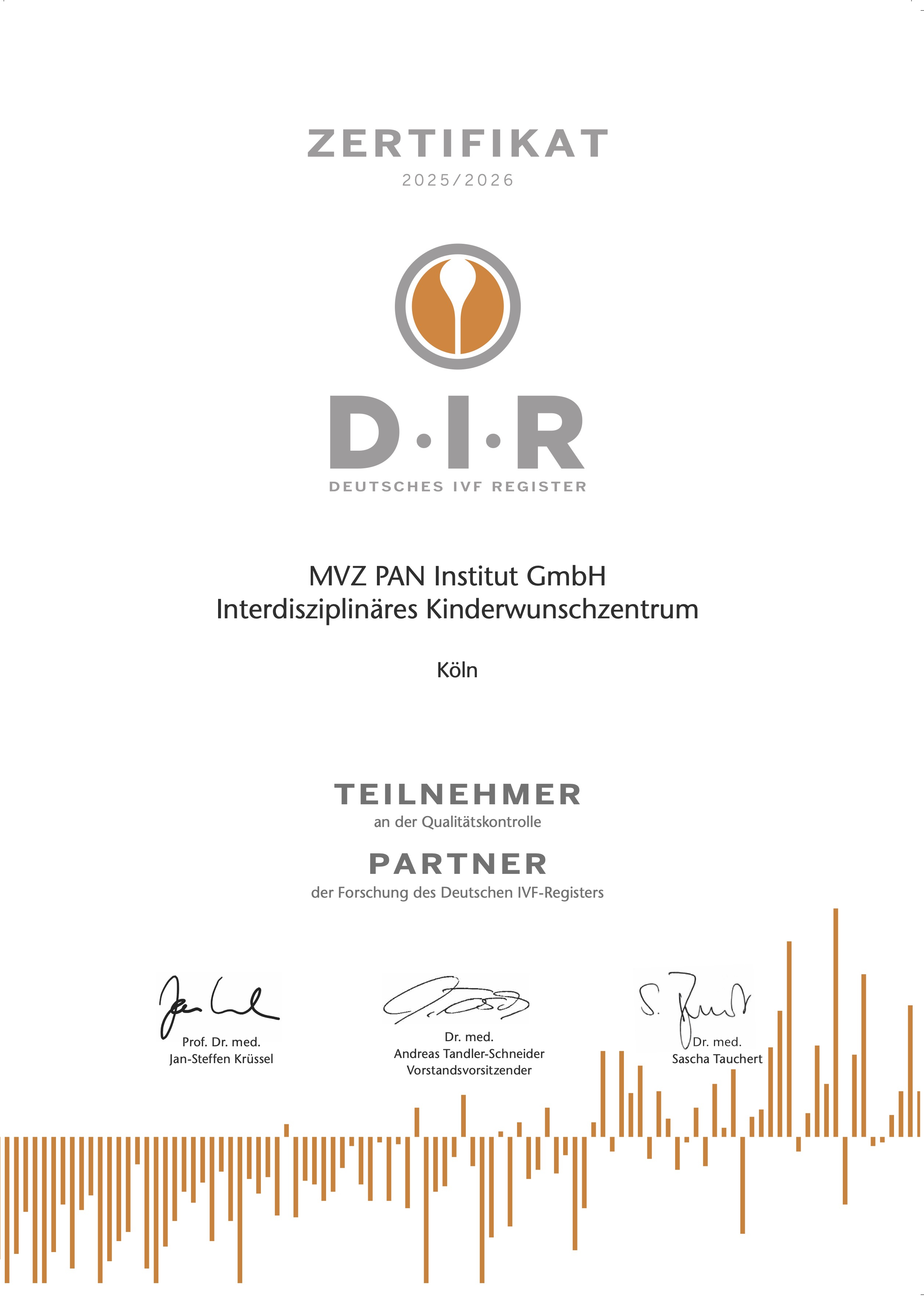 The German IVF Register confirms the participation of the MVZ PAN Institute in quality control. Certificate
